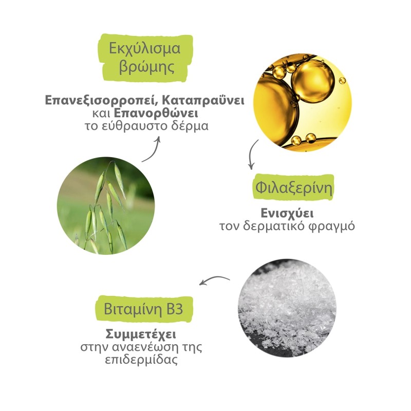 Its effectiveness reduces skin dryness, strengthens the skin barrier and contributes to balancing the microbiome. With a non-greasy and non-sticky texture for triple soothing action with just one application per day.