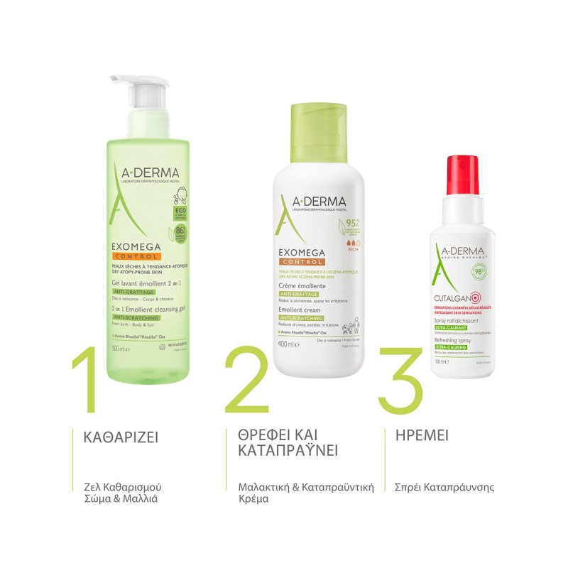Before applying the cream, cleanse the skin with an Exomega Control hygiene product. Then apply the cream to your hands. Rub a small amount between your hands until it warms up. Apply the cream with simple movements.