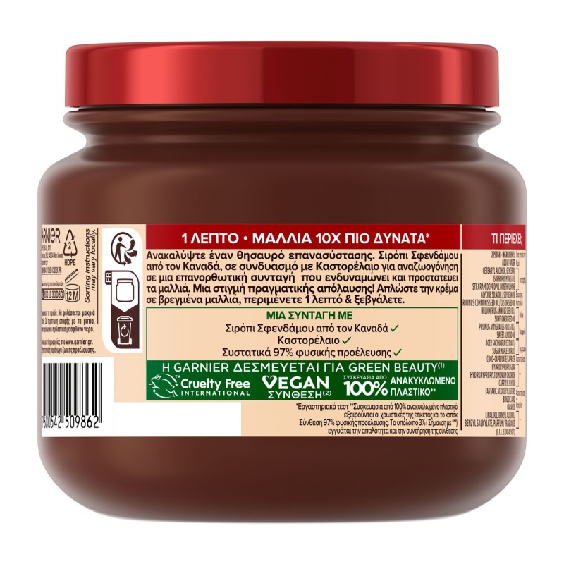 Discover the healing treasure Canadian Maple Sap & revitalizing Castor Oil, blended into our rich remedy that acts like a healing balm for deeply repaired, strengthened & protected hair. A truly sensorial moment for you.