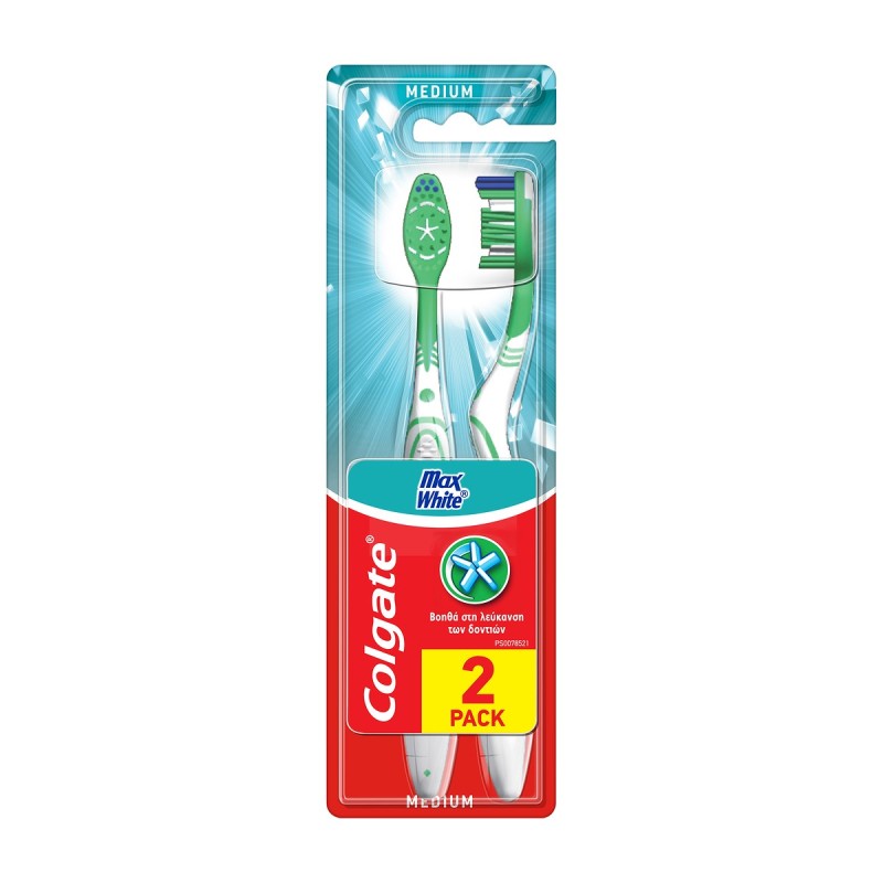 The Colgate Max White Medium Toothbrush features a unique polishing star along with a specially designed arrangement of cleaning bristles that help remove stains, revealing the natural whiteness of your teeth.