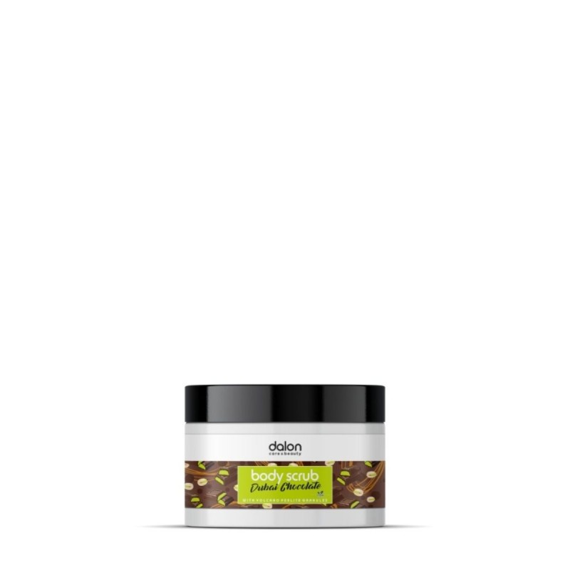 Dalon exfoliating cream with Dubai chocolate scent, volcanic perlite grains and aloe extract, gently exfoliates, leaving the skin smooth and soft. Suitable for all skin types. Dermatologically tested.