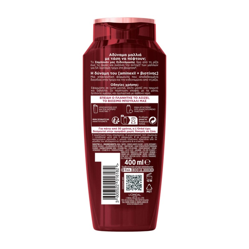 Stress, seasonal changes, brushing and styling ... You feel your hair weaker, thinner and you notice intense hair loss. Your hair needs special care to regain its strength! Strengthen weak hair with a tonic combination of ingredients [Biotin + Aminexil]. Day by day, the scalp has a healthier look, the hair is stronger & more resistant to external factors and returns to its old image!