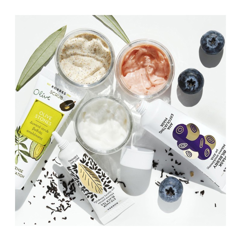 Creamy-textured scrub, enriched with olive kernel beads for deep exfoliation and cleansing. The olive kernels thoroughly clean pores, removing impurities and dead skin cells. Organic extra virgin olive oil, rich in antioxidants, nourishing fatty acids, vitamins, and polyphenols, hydrates and nourishes the skin. Calendula extract and active aloe provide moisturizing, antioxidant, and soothing benefits.
