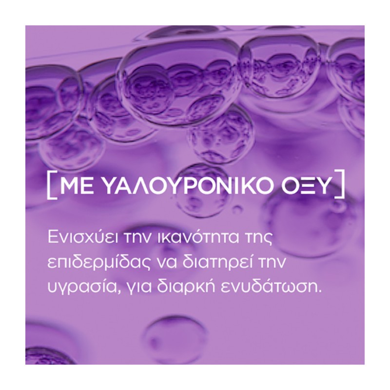 Intensively moisturizes, smoothes and tones. Enriched with pure hyaluronic acid, a powerful active molecule used in dermatology. Helps to intensively hydrate and tighten the skin.