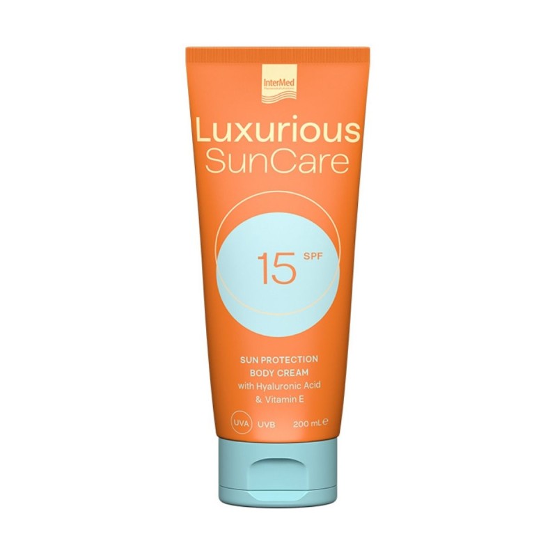 Luxurious Sun Care Body Cream SPF15 with hyaluronic acid, vitamin E and a special combination of UV filters, moisturizes and regenerates the skin while creating a UV protection cloak that protects against sunburn and premature skin aging. Reduces the risk of allergy appearance due to solar radiation.