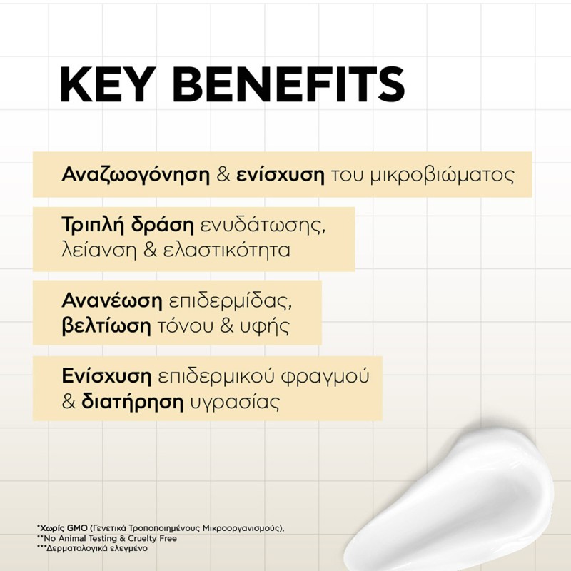 Age-defying Sensitive Biome Base NS: based on fermented angelica root extracts and 1% active postbiotics. Provides powerful rejuvenation and helps balance the skin’s microbiome.