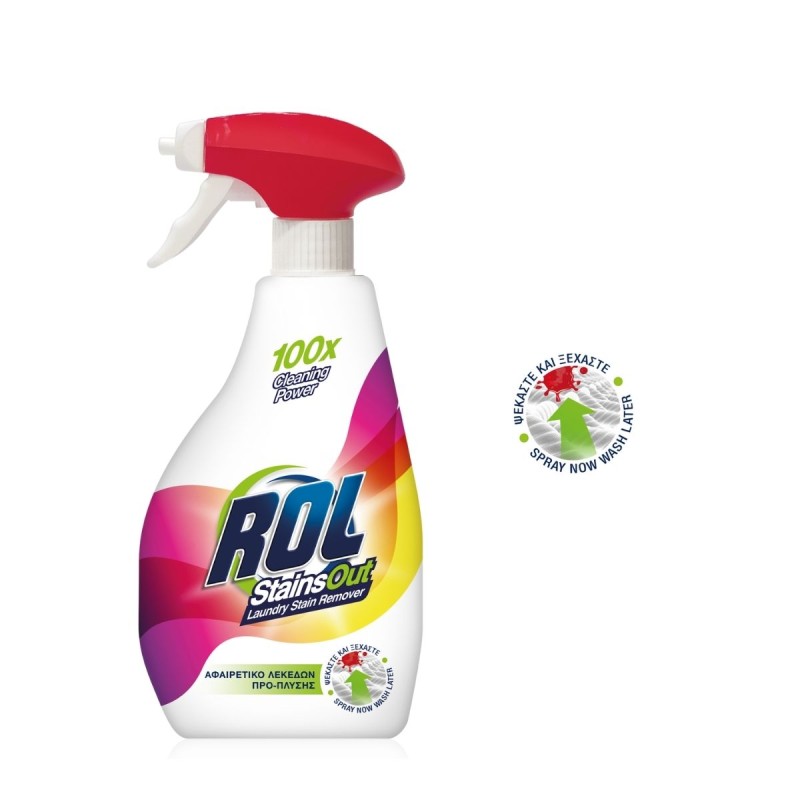 The most advanced stain remover and wash booster ROL StainsOut delivers 100 times more enzymes and active ingredients in each spray directly onto the stain compared to a regular wash with liquid or powder detergent.