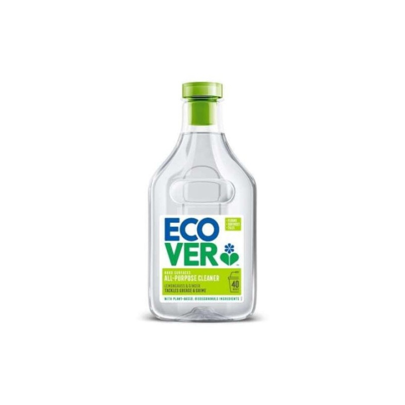 The Ecover All Purpose Cleaner is an eco-friendly, plant-based, biodegradable household cleaner that effectively removes grease, grime and dirt from hard surfaces. It leaves floors, tiles, kitchen counters and other washable surfaces clean and fresh without harsh chemical residues. The formula is gentle on the environment, never tested on animals, and comes in a bottle made from recycled plastic to reduce waste.
