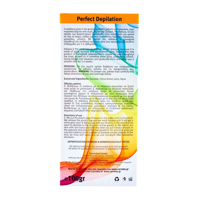 Carnaby Halawa is a 100% natural sugar paste for body hair removal, inspired by the traditional sugaring method. It removes hair effectively from the root, leaving the skin smooth and soft with results that can last up to 4 weeks.