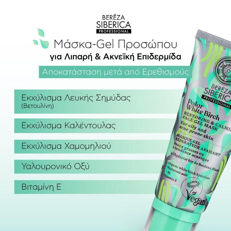 Discover the Restoring Gel Mask for Irritated Skin, Bereza Siberica, for Oily & Acne-Prone Skin, 100ml, a specialized skincare solution by Natura Siberica, part of the Bereza Siberica line, created to provide face care with targeted soothing, restoration, and hydration. With its refreshing gel texture, it calms irritations and redness while helping the skin regain its balance and comfort.