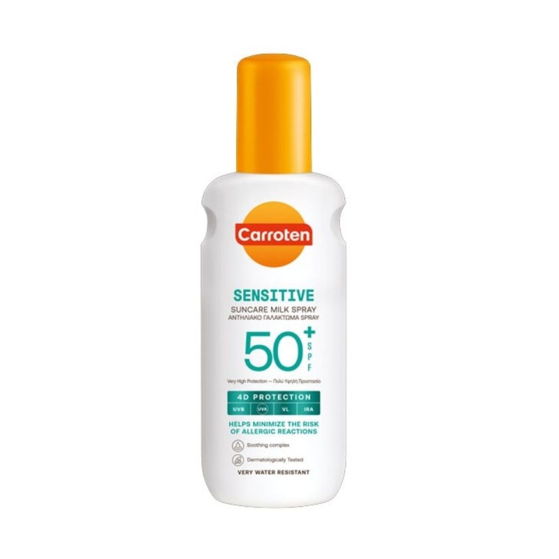The Carroten Sensitive Sunscreen Lotion SPF50+ helps minimize the risk of allergic reactions while providing hydration to sensitive skin, thanks to the unique combination of Hyaluronic Acid and Betaine.