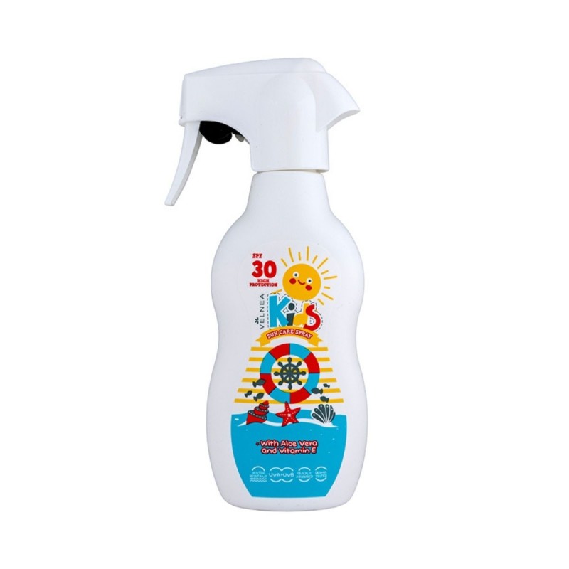 VELNEA KIDS sunscreen spray SPF30 is specially formulated to protect children’s sensitive skin from harmful sun exposure. Enriched with Aloe Vera and Vitamin E, it helps soothe and hydrate the skin while providing effective protection against UVA and UVB rays. Its lightweight, non-greasy texture absorbs quickly, making application easy and comfortable. Ideal for everyday use at the beach or during outdoor activities, keeping skin protected, soft, and nourished.