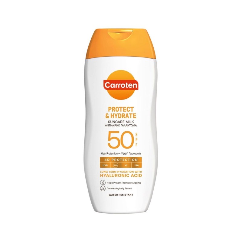 The Carroten Protect & Hydrate Sunscreen Lotion SPF50 provides enhanced protection, targeting a broad spectrum of solar radiation. With a lightweight, non-greasy, hydrating texture, it delivers deep moisture, fast absorption, and leaves the skin soft and smooth.
