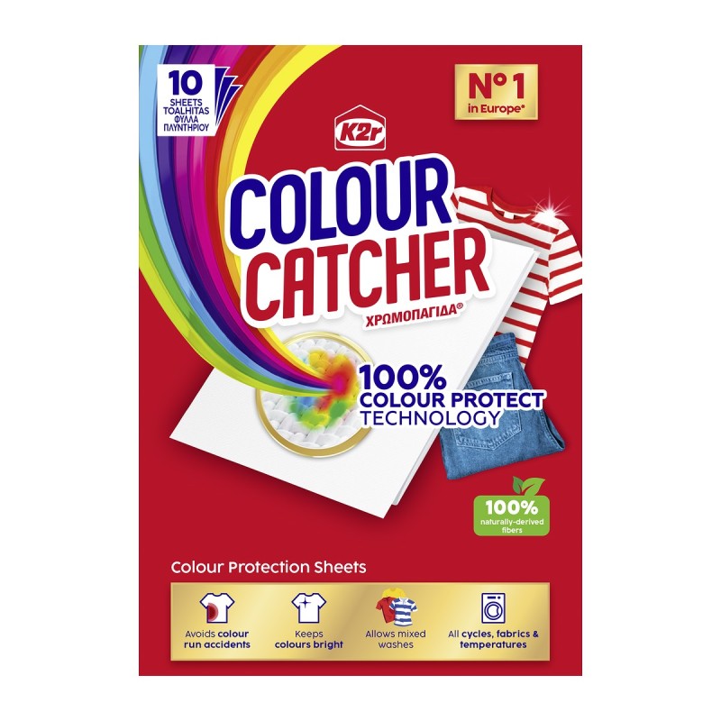 Οι χρωμοπαγίδες της εταιρείας K2R προστατεύουν τα χρώματα των ρούχων, προλαμβάνοντας τη μεταφορά των χρωμάτων κατά τη διάρκεια μεικτών πλύσεων. Αποτρέπουν το γάριασμα, απορροφούν και εγκλωβίζουν τη βαφή και τα κατάλοιπα βρωμιάς. Μακριά από παιδιά
