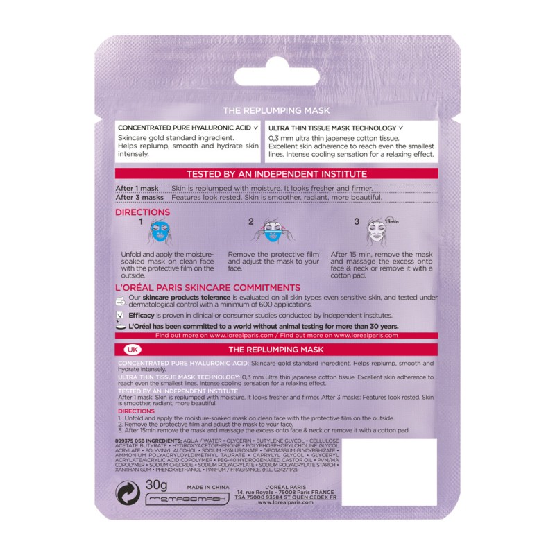 Loreal Paris Revitalift - Υφασμάτινη Μάσκα για Εντατική Ενυδάτωση & Σύσφιξη της Επιδερμίδας, 30g