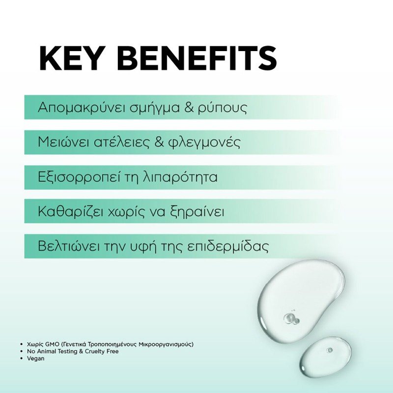Υδρολύτης Λευκής Σημύδας: Καταπραΰνει και αναζωογονεί την επιδερμίδα, βοηθώντας στη ρύθμιση της λιπαρότητας.